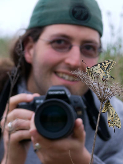 Old World swallowtail (Papilio machaon) resting on an unidentified plant